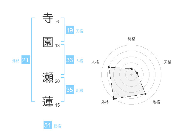 寺園 瀬蓮さんの外格は21画の5点!