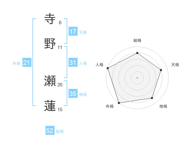 寺野 瀬蓮さんの総格は52画の4点!