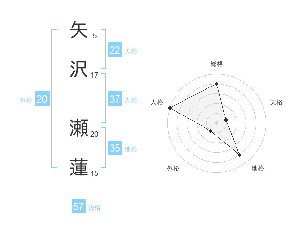 矢沢 瀬蓮さんを姓名の画数から五運を鑑定