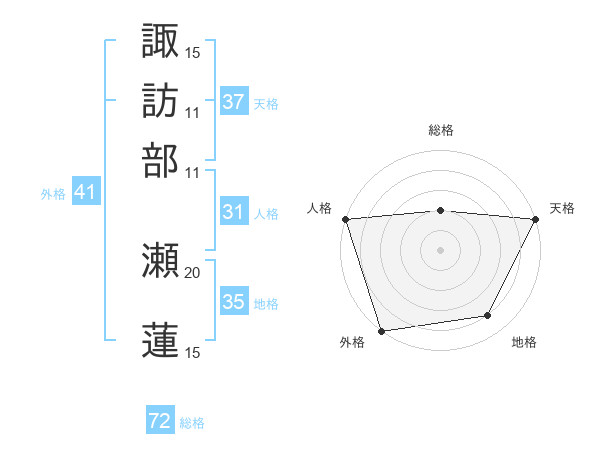 諏訪部 瀬蓮さんの外格は41画の5点!