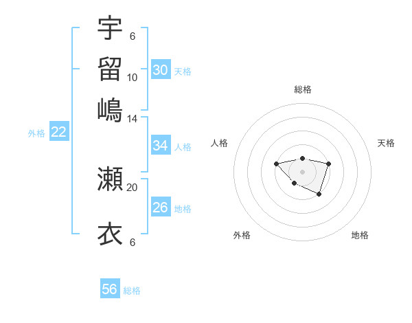 宇留嶋 瀬衣さんの総格は56画の1点!