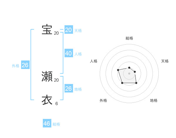 宝 瀬衣さんを姓名の画数から五運を鑑定