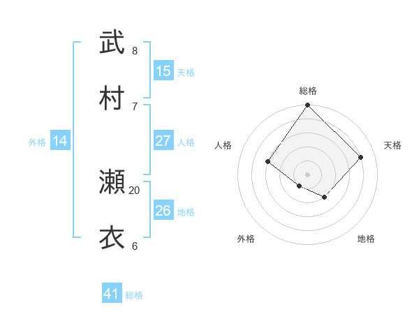 武村 瀬衣さんの総格は41画の5点!