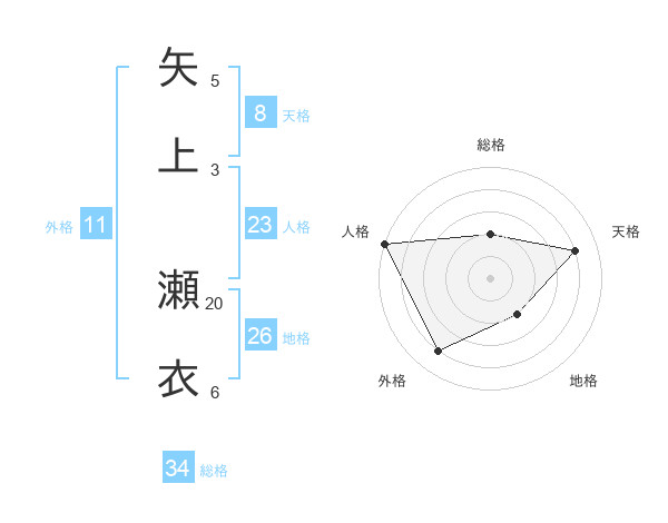 矢上 瀬衣さんを姓名の画数から五運を鑑定