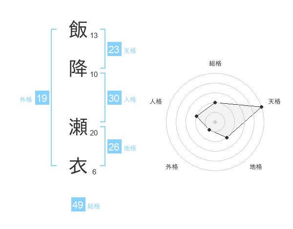 飯降 瀬衣さんの天格は23画の5点!