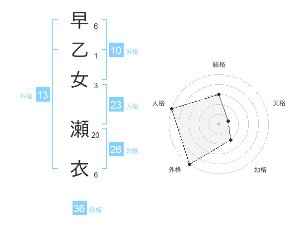 早乙女 瀬衣さんの外格は13画の5点!