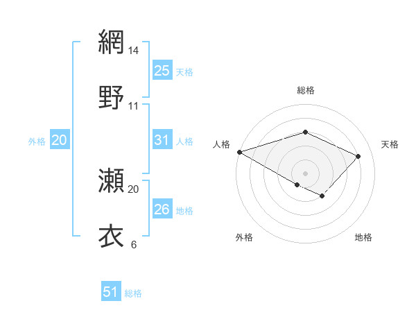 網野 瀬衣さんを姓名の画数から五運を鑑定