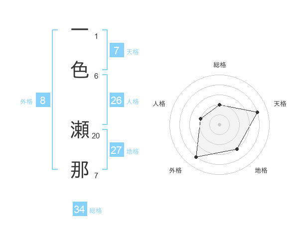一色 瀬那さんを姓名の画数から五運を鑑定