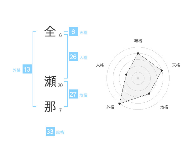 全 瀬那さんの総格は33画の4点!