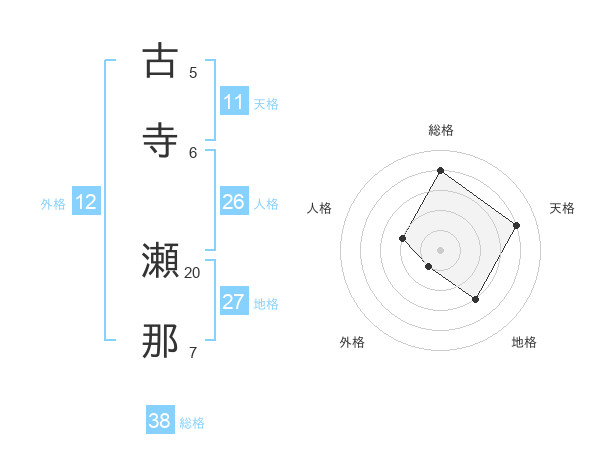 古寺 瀬那さんの総格は38画の4点!