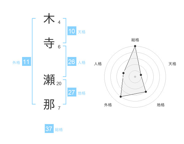 木寺 瀬那さんを姓名の画数から五運を鑑定