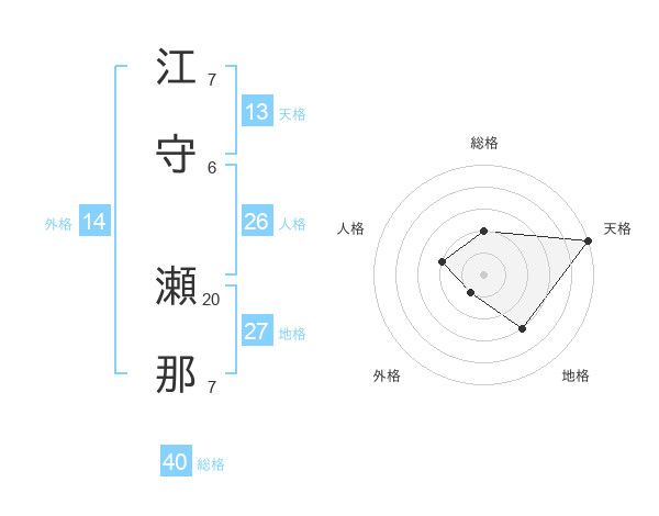 江守 瀬那さんの総格は40画の2点!