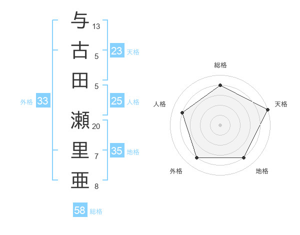 与古田 瀬里亜さんを姓名の画数から五運を鑑定
