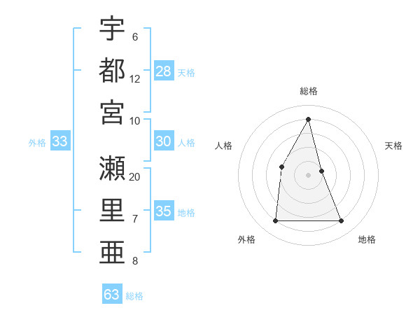 宇都宮 瀬里亜さんの総格は63画の4点!