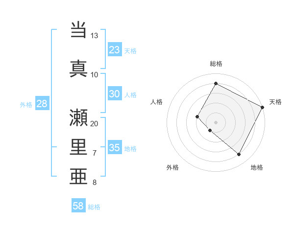 当真 瀬里亜さんの総格は58画の4点!