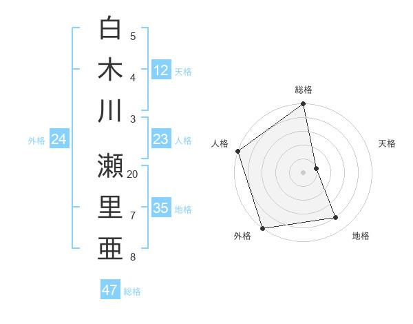 白木川 瀬里亜さんの総格は47画の5点!