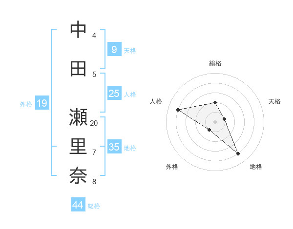中田 瀬里奈さんを姓名の画数から五運を鑑定