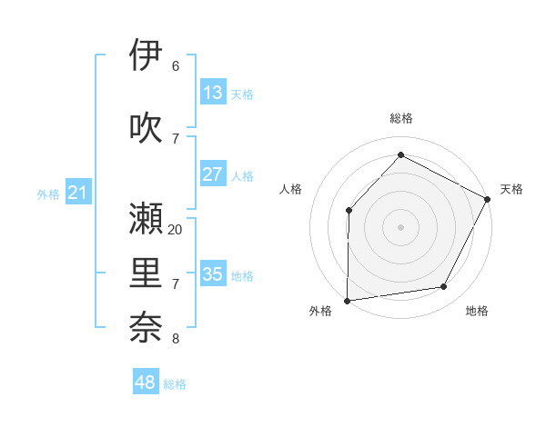 伊吹 瀬里奈さんを姓名の画数から五運を鑑定