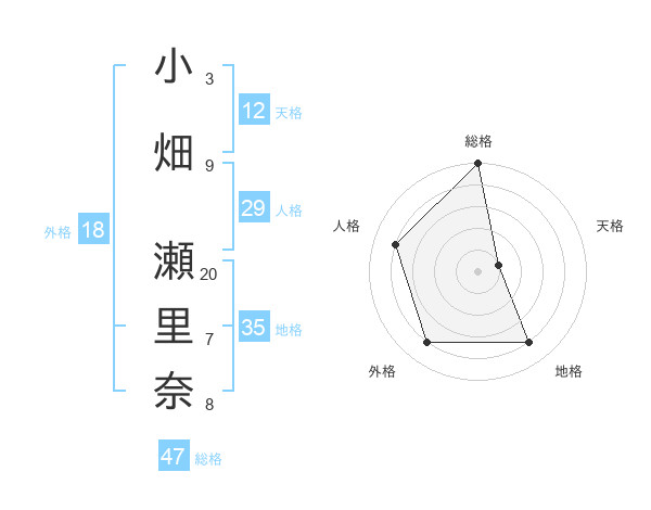 小畑 瀬里奈さんを姓名の画数から五運を鑑定