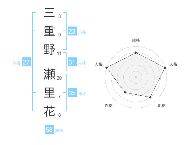 三重野 瀬里花さんの天格は23画の5点!