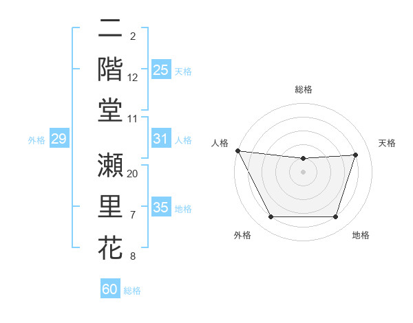 二階堂 瀬里花さんの天格は25画の4点!