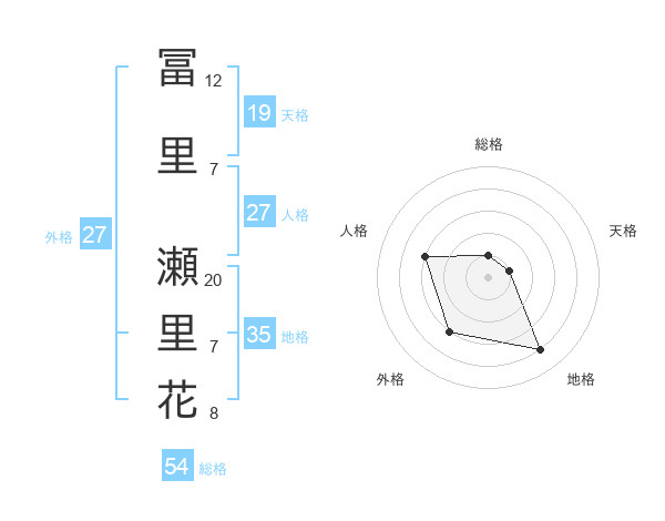 冨里 瀬里花さんを姓名の画数から五運を鑑定