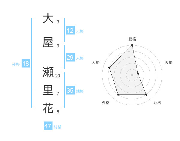 大屋 瀬里花さんを姓名の画数から五運を鑑定
