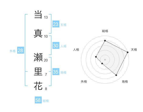 当真 瀬里花さんの地格は35画の4点!