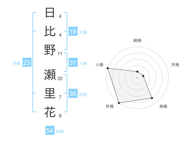 日比野 瀬里花さんを姓名の画数から五運を鑑定