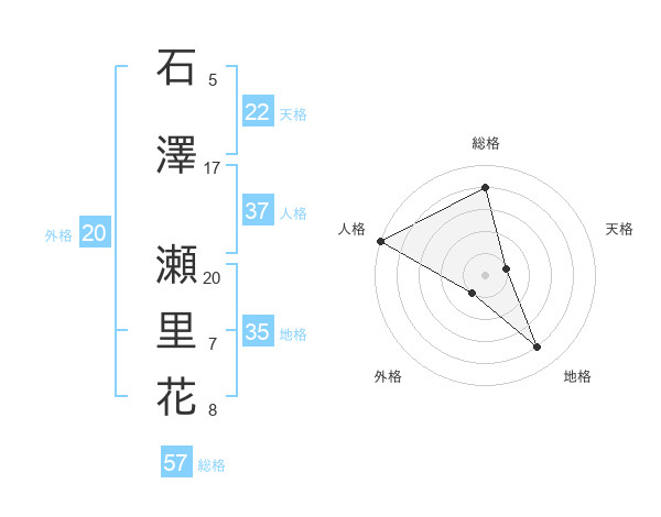 石澤 瀬里花さんを姓名の画数から五運を鑑定