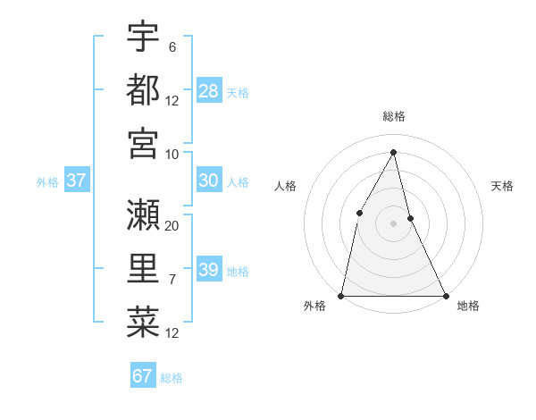 宇都宮 瀬里菜さんの総格は67画の4点!