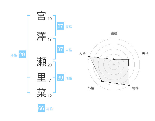 宮澤 瀬里菜さんの総格は66画の1点