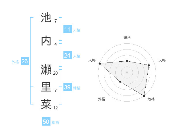 池内 瀬里菜さんを姓名の画数から五運を鑑定