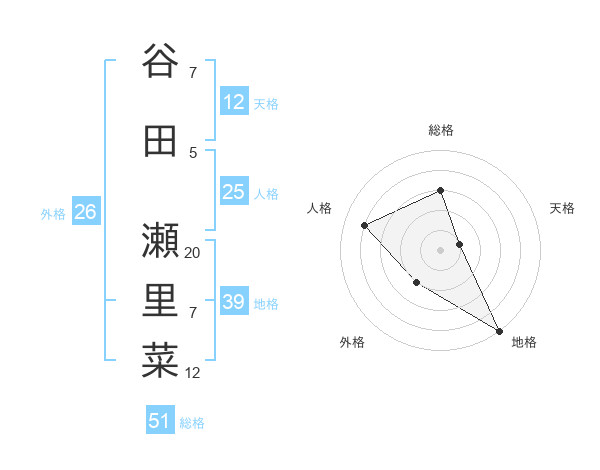 谷田 瀬里菜さんを姓名の画数から五運を鑑定