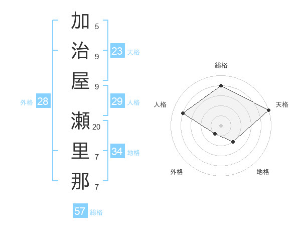 加治屋 瀬里那さんを姓名の画数から五運を鑑定