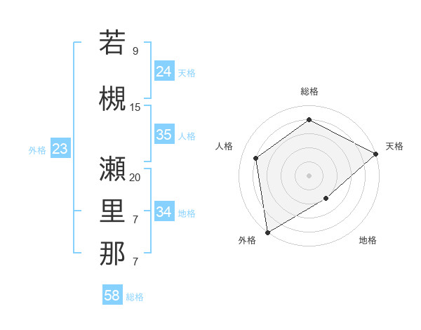 若槻 瀬里那さんの総格は58画の4点!