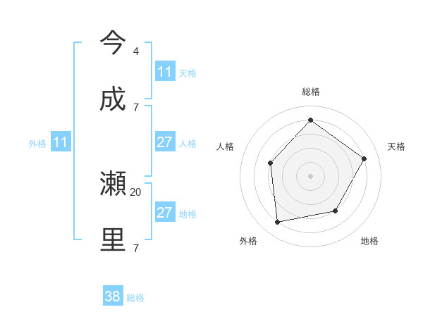 今成 瀬里さんの総格は38画の4点!