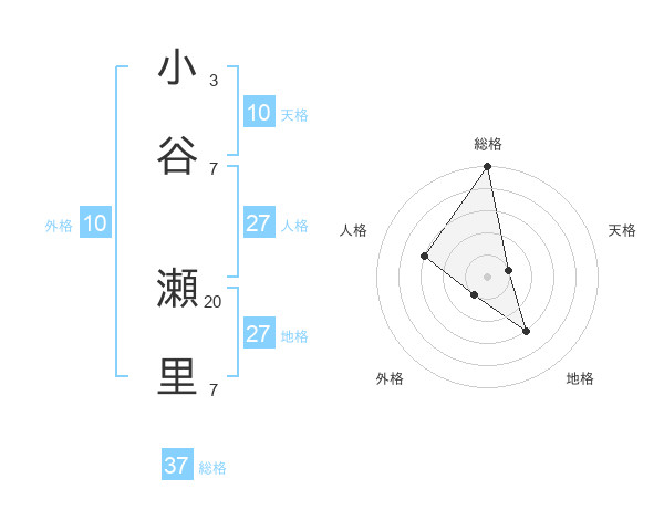 小谷 瀬里さんを姓名の画数から五運を鑑定