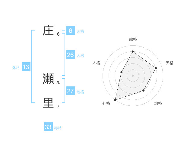 庄 瀬里さんの外格は13画の5点!
