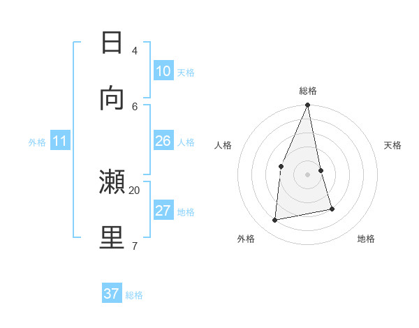 日向 瀬里さんの総格は37画の5点!