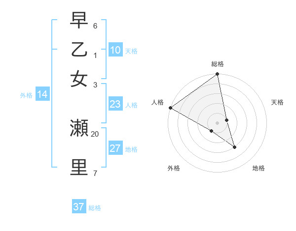 早乙女 瀬里さんを姓名の画数から五運を鑑定