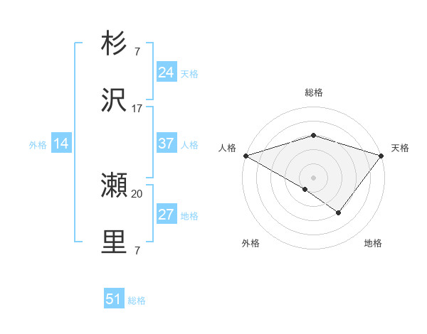 杉沢 瀬里さんを姓名の画数から五運を鑑定