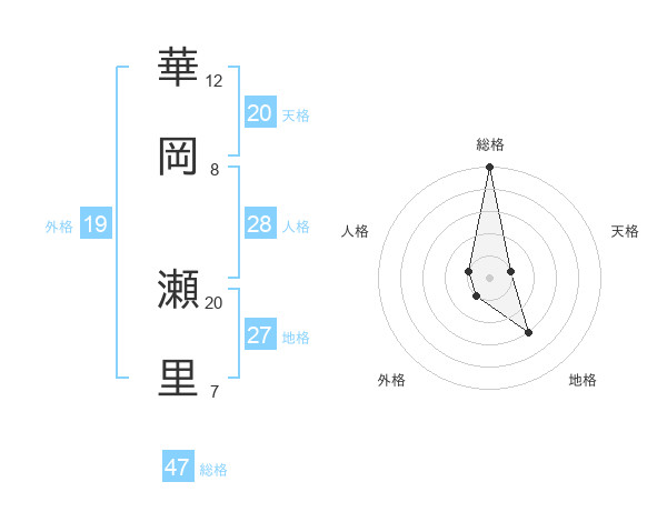 華岡 瀬里さんを姓名の画数から五運を鑑定