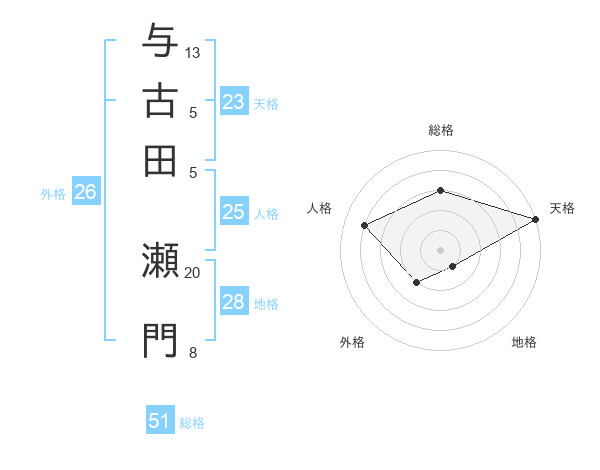 与古田 瀬門さんを姓名の画数から五運を鑑定