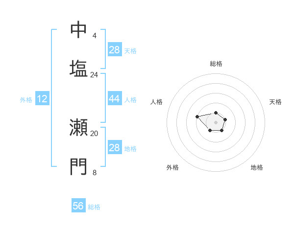 中塩 瀬門さんの総格は56画の1点!