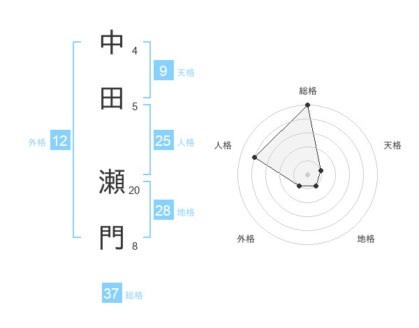中田 瀬門さんを姓名の画数から五運を鑑定