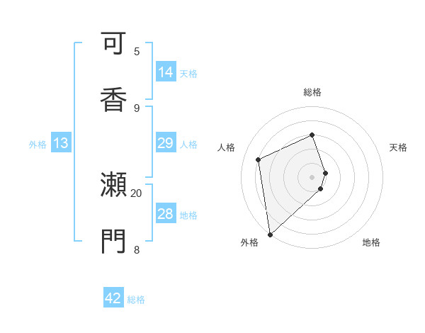 可香 瀬門さんの外格は13画の5点!