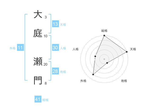 大庭 瀬門さんを姓名の画数から五運を鑑定