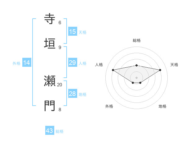 寺垣 瀬門さんの総格は43画の2点!