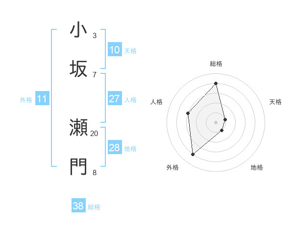 小坂 瀬門さんの総格は38画の4点!
